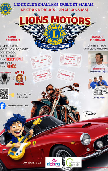 Suite à l'édition réussie de l'année dernière, le lions club de Challans remets ça au grand palais les 12 et 13 septembre prochain. Un beau programme et des guests exceptionnelles ! Réservez la date dans votre agenda